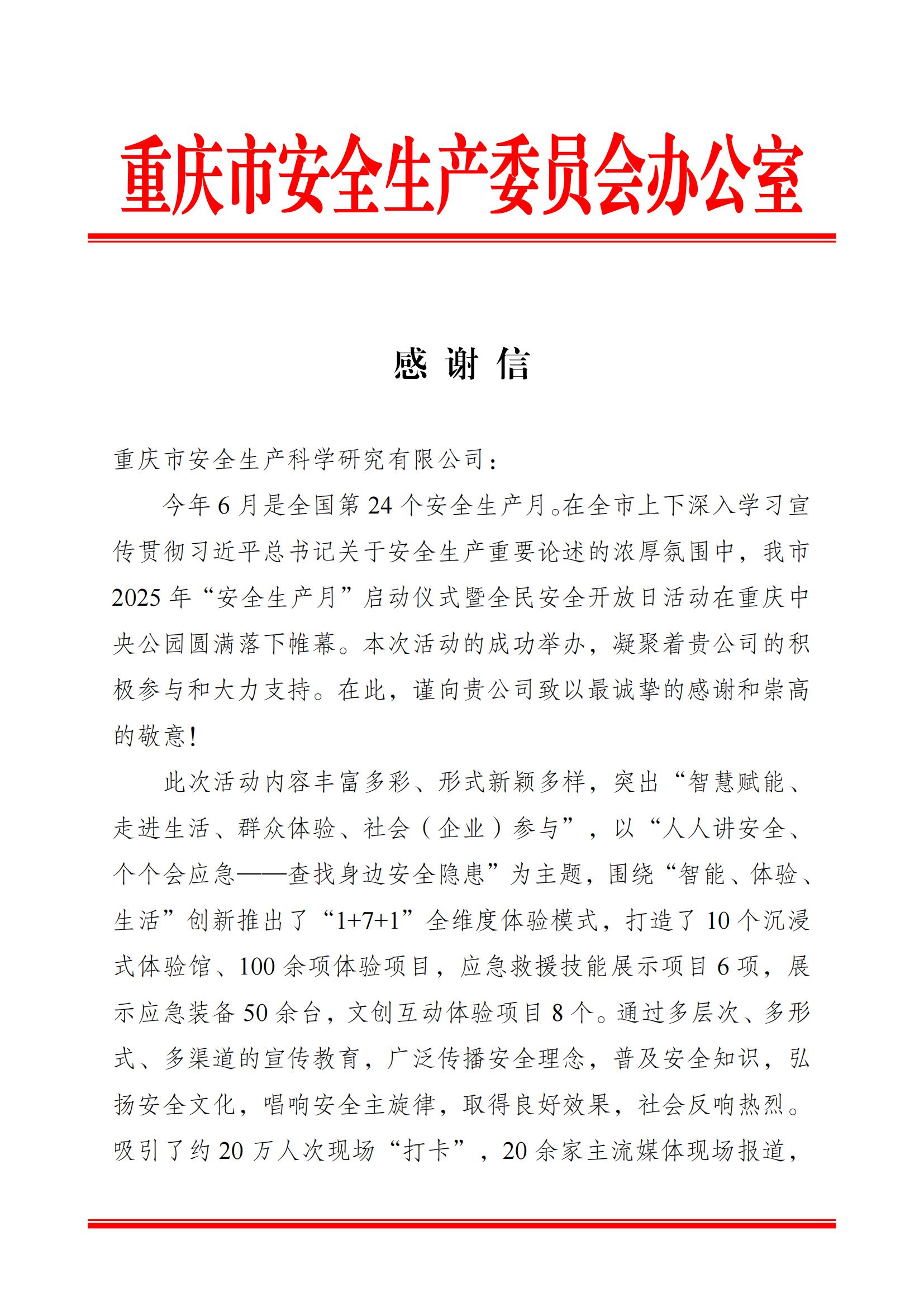 公司以專(zhuān)業(yè)力量助力重慶市“安全生產(chǎn)月”活動(dòng)